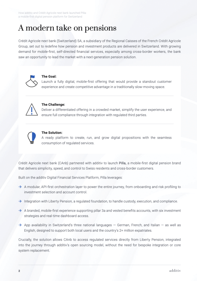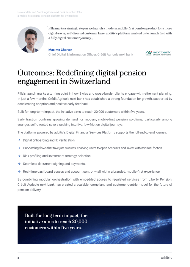 How additiv and Crédit Agricole next bank launched Pilla: a mobile-first digital pension platform for Switzerland